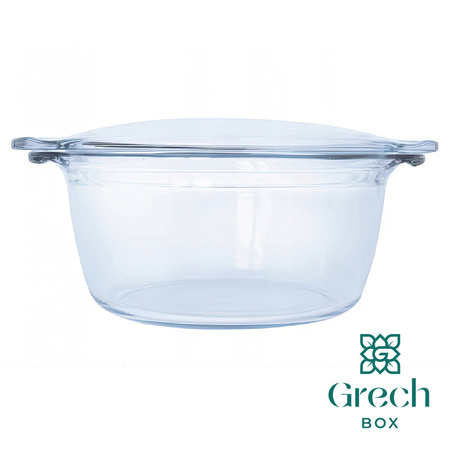 Szklany garnek żaroodporny o pojemności 2,2 l wykonany został z wysokiej jakości szkła borokrzemowego, które wyróżnia się wyjątkową odpornością na działanie skrajnych temperatur. Jest to naczynie wielofunkcyjne, przeznaczone zarówno do gotowania, duszenia, pieczenia, jak i przechowywania czy serwowania potraw.